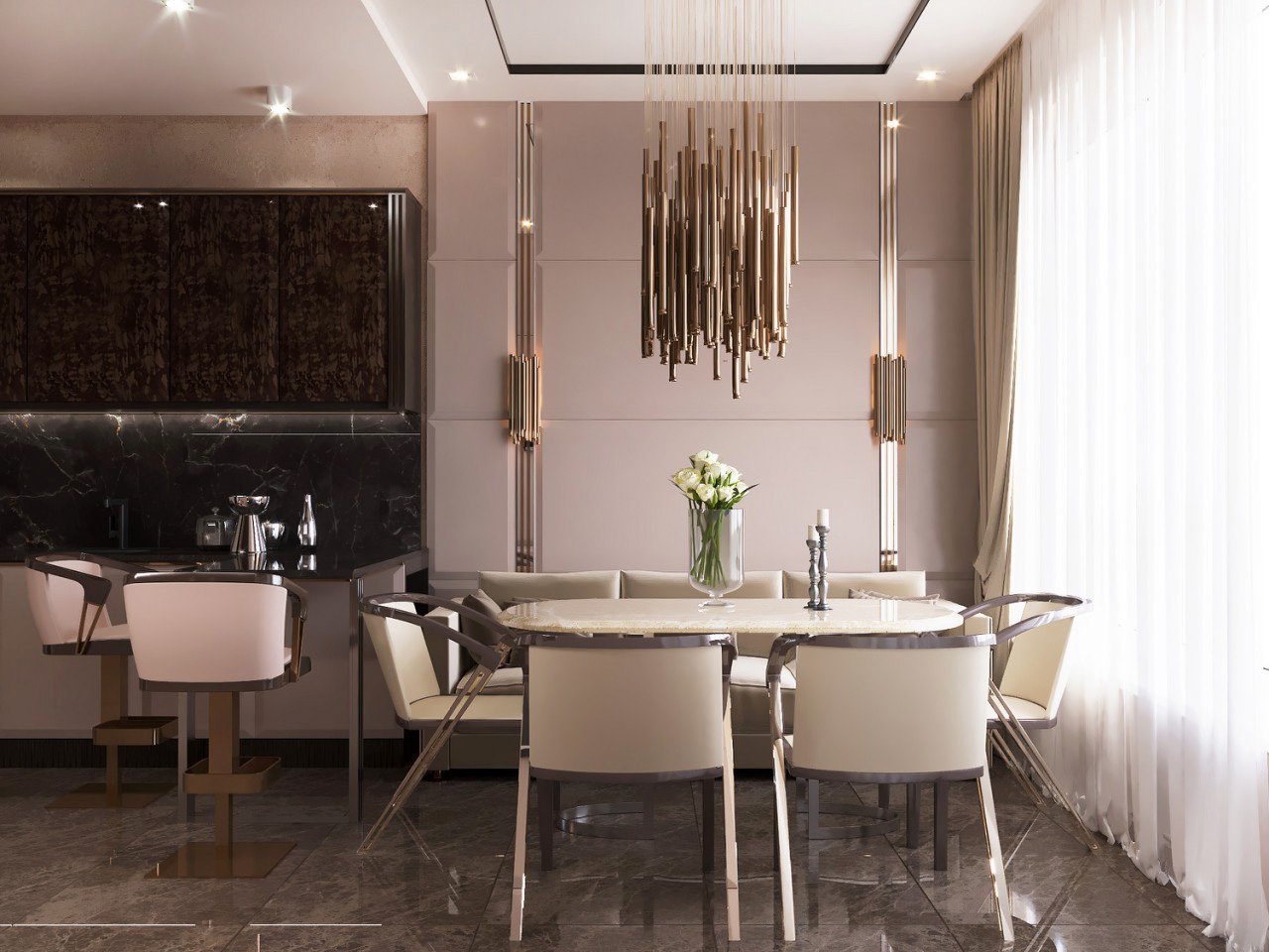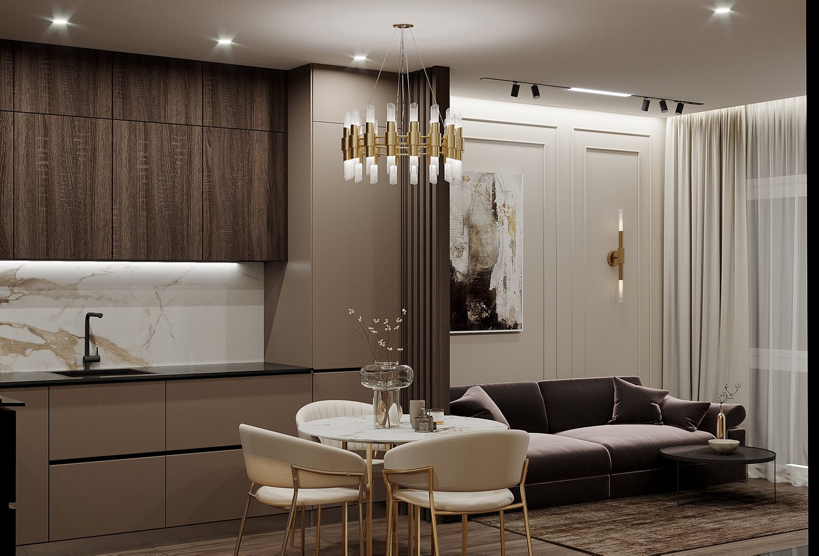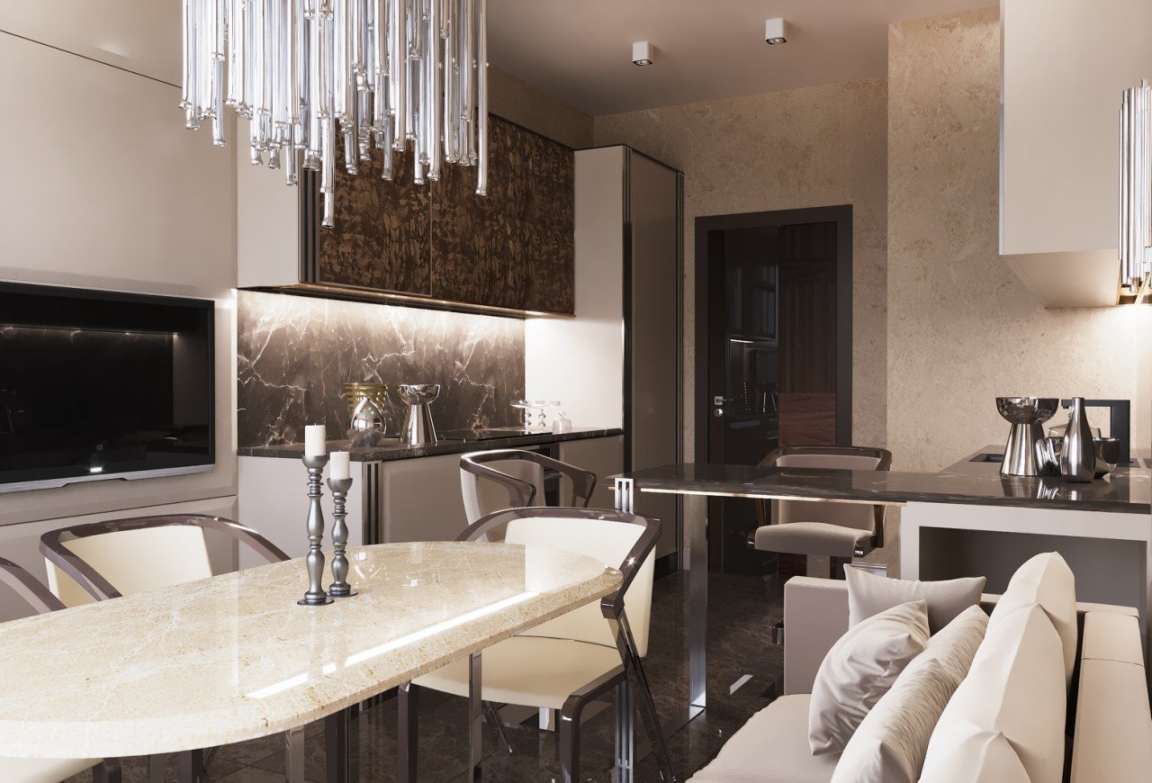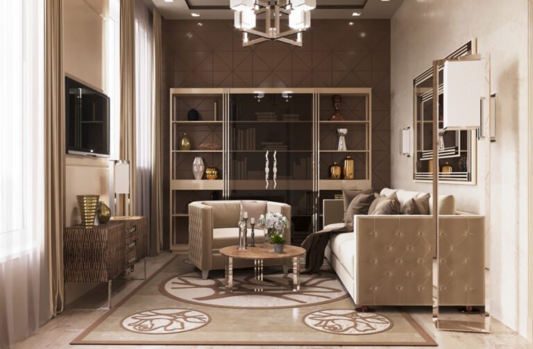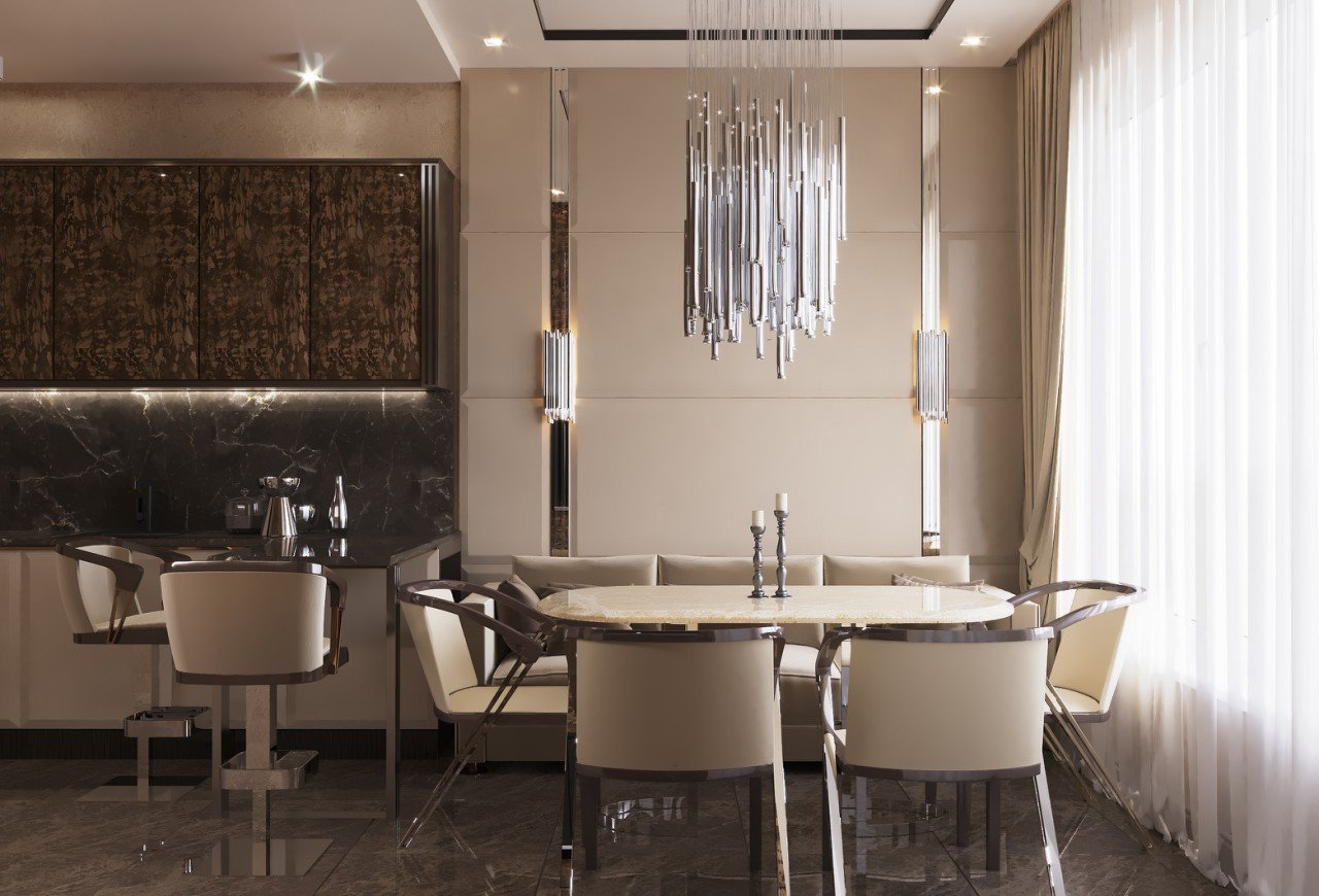 Eleganz, Raffinesse und ein Gefühl von makellosem Geschmack. In Luxusinterieurs ist jedes Detail ein Akzent, jede Form eine durchdachte Entscheidung. Edle Materialien, ruhige Farbtöne, hochwertige Texturen und ein moderner Ansatz schaffen ein zeitloses Interieur.